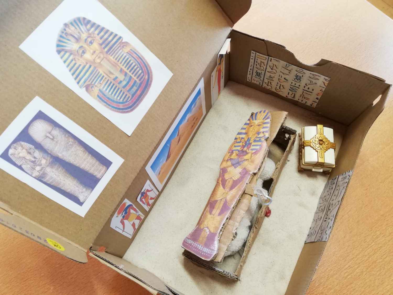 Im Homeschooling wurden wir kreativ! Auch wenn unser Unterricht zurzeit etwas anders und häufig vor dem Bildschirm abläuft, entstehen viele beeindruckende, einfallsreiche Werke. Die Schüler*innen der 2y Klasse habe in ihrem Projekt im Geschichtsunterricht erfolgreich versucht, alles was sie über das alte Ägypten erfahren und gelernt haben, in ihrer Grabkammer im Schuhkarton umzusetzen.