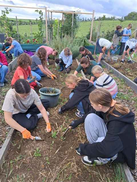 Nach langer Sommerpause gab es am ersten Gartentag nach den Ferien viel zu tun für die SchülerInnen und Schüler des Nachhaltigkeitsschwerpunktes. Unter anderem wurde auch Unkraut gezupft und die Beete wieder in Schuss gebracht.