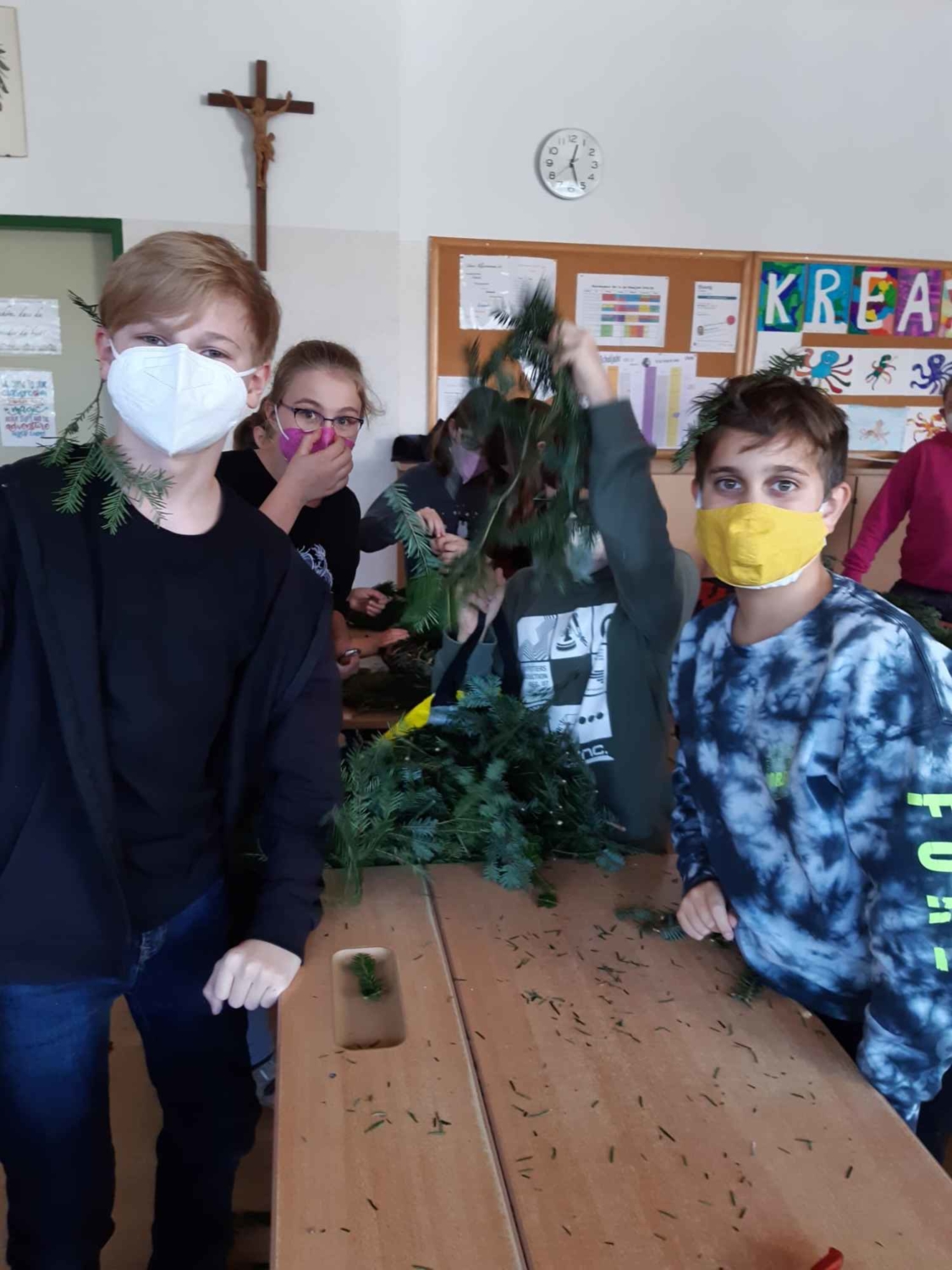 Daher gestaltete die 2a heuer ihren Adventskranz gemeinsam mit ihren beiden Klassenvorständen Sandra Dallinger und Lukas Wieseneder selbst!
