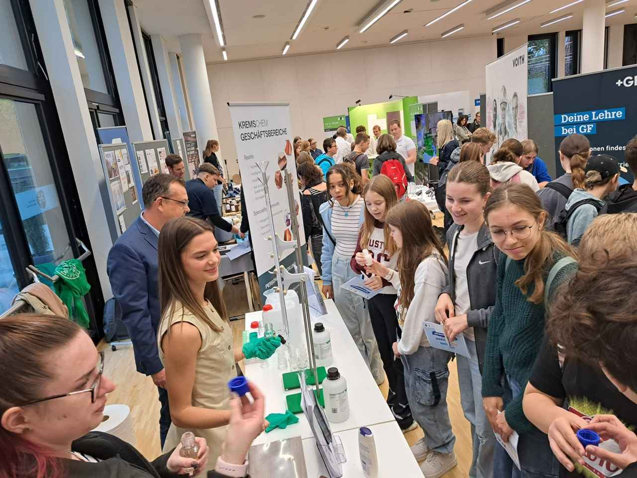Was die Naturwissenschaft alles kann, erlebten die Klassen 3a und 3b gemeinsam mit 450 anderen Schülerinnen und Schülern aus ganz Niederösterreich am Experimentaltag in Krems. Eigenständig und praxisorientiert experimentieren, dafür hatten die Schülerinnen und Schüler einen ganzen Vormittag an 28 Versuchsständen Zeit. Mit dem ersten Platz und damit einem Gewinn von 1000€ für die Klassenkasse kehrte die 3a nicht nur an Erfahrung reicher zurück.