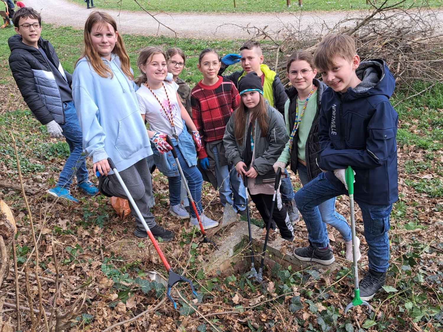 Großes Engagement für eine saubere Umwelt bewies die 1a Klasse bei der Müllsammelaktion am Michelbach. Die Kinder waren erstaunt, wie viel Müll gedankenlos weggeworfen wurde.