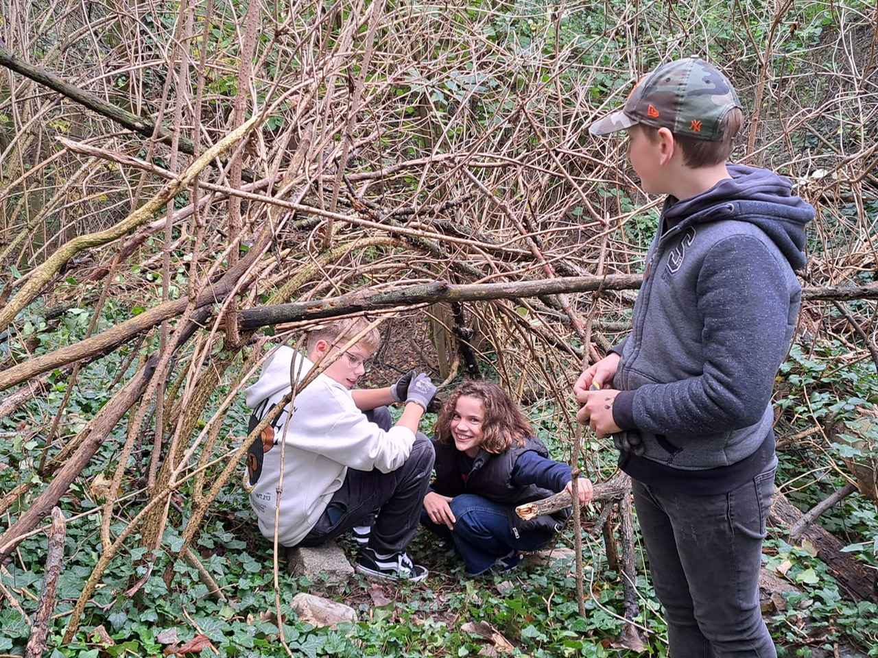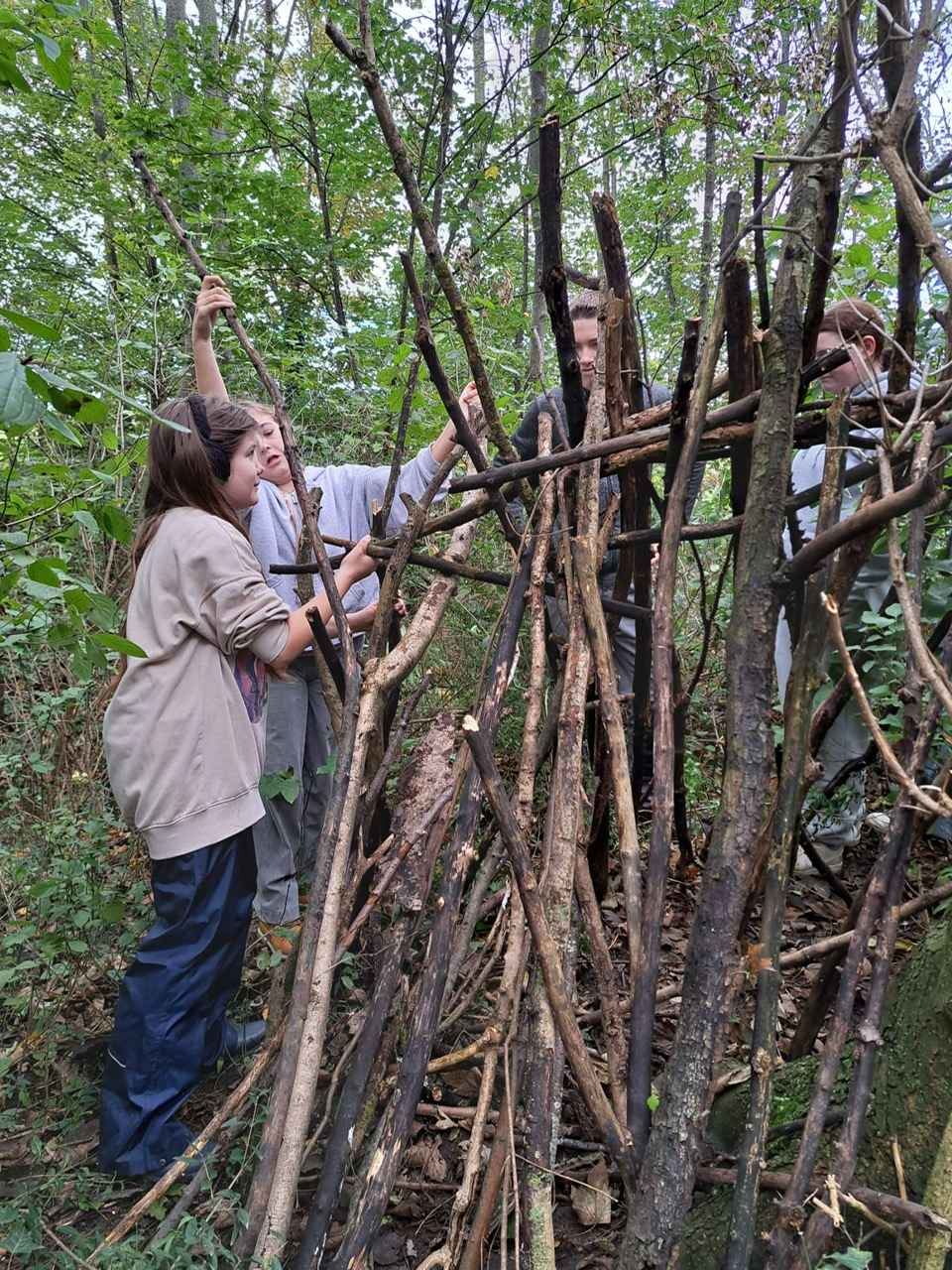 Als Survival Experten bewiesen sich die Schülerinnen und Schüler des Nachhaltigkeitsschwerpunktes. Bei einem Outdoorprojekt errichteten sie Schutzbehausungen aus Naturalien.