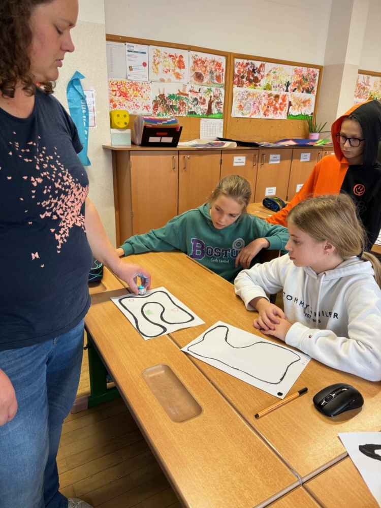 Unsere Expertin Kollegin Regina Gesswagner führt unsere Erstklassler in die Materie der Robotik gekonnt ein.