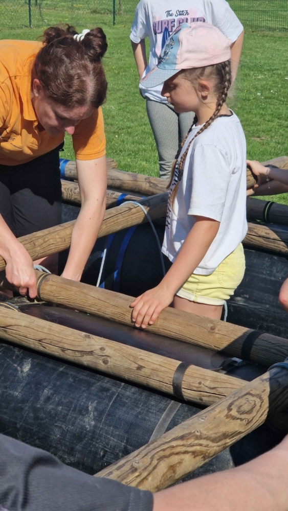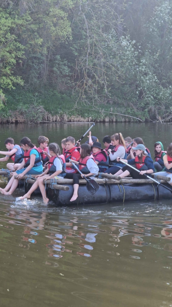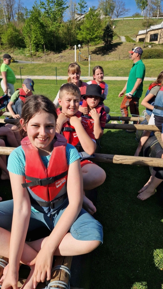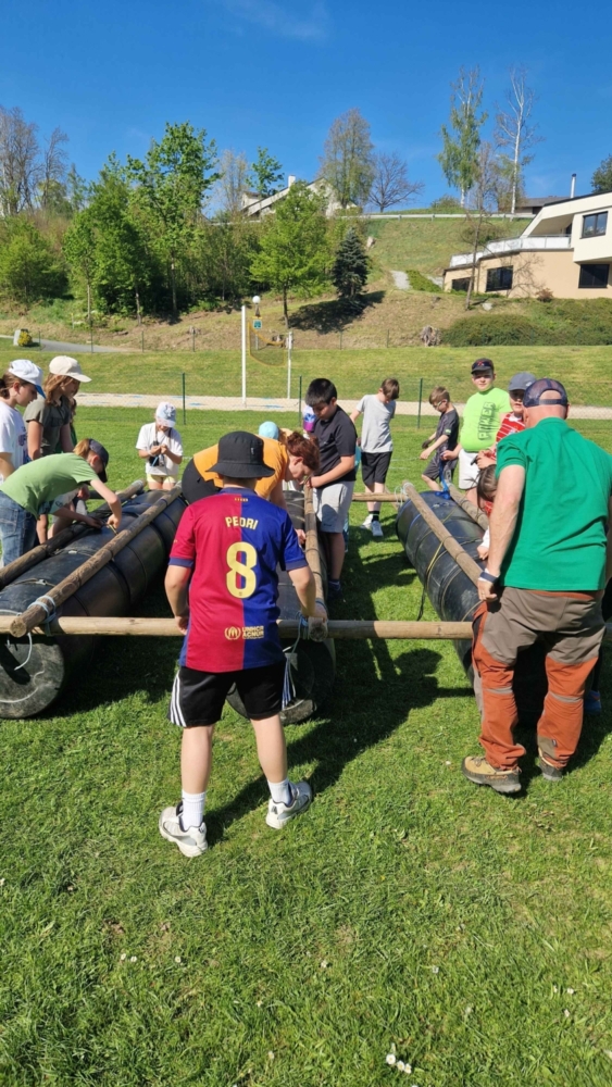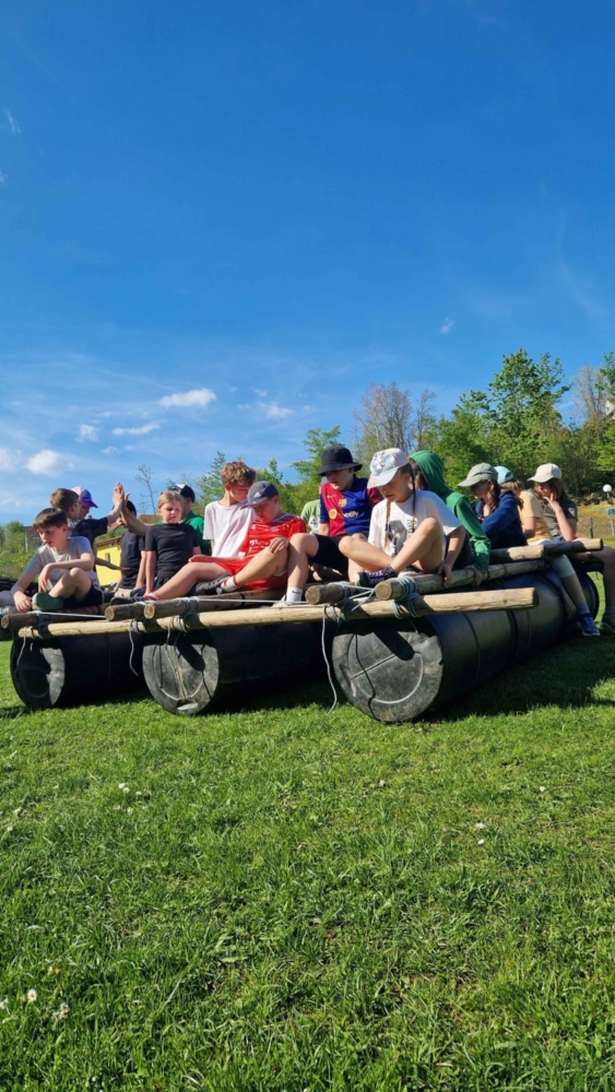 Die spannendste Herausforderung stellte jedoch der Bau unseres Floßes dar. Nur durch gemeinsames Engagement konnten wir dieses stabile, schwimmende Konstrukt erschaffen. Die Floßfahrt unter gehisster Piratenflagge, bei der es schließlich gelang unseren „Schatz“ zu bergen, war der krönende Höhepunkt unseres Projektes. Dieses Erlebnis bleibt uns nicht nur als ein schönes Abenteuer in Erinnerung, sondern zeigt uns auch, wie wichtig der Teamgeist ist: Nur wenn alle an einem Strang ziehen, kann etwas Großartiges gelingen.