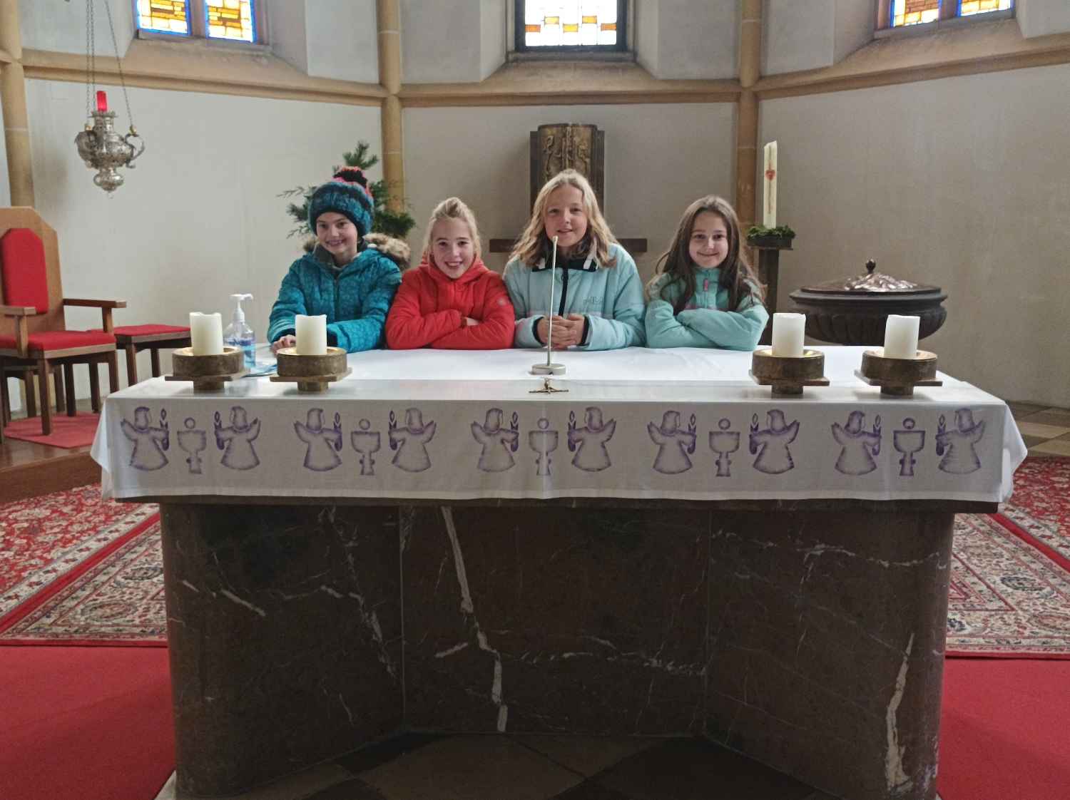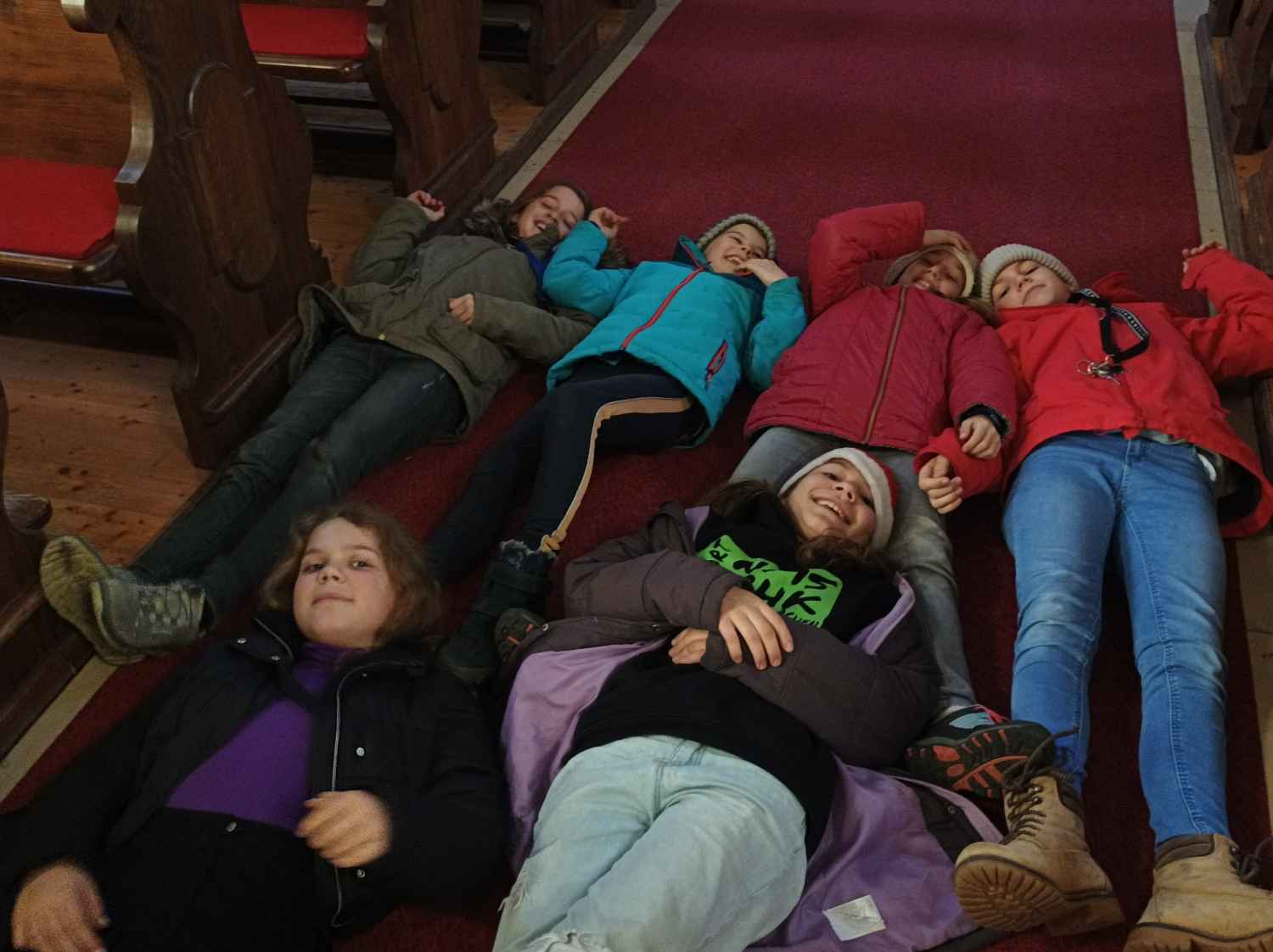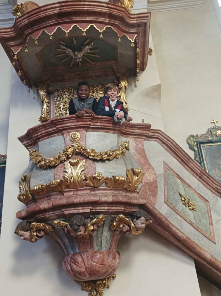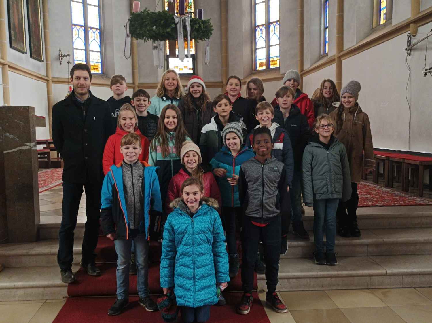 Die Schülerinnen und Schüler der 1y Klasse entdeckten den Kirchenraum der Pfarrkirche mit allen Sinnen. Pastoralassistent Jürgen Schnetzinger lud die Kinder ein, ihren Lieblingsplatz in der Kirche zu suchen und kurz darüber zu erzählen, warum dies ihr Lieblingsplatz sei. Voller Begeisterung bestiegen die Schülerinnen und Schüler auch den Kirchenturm und bestaunten die Glocke der Kirche.