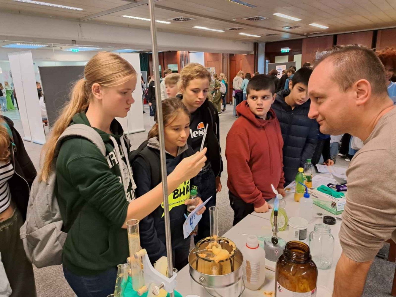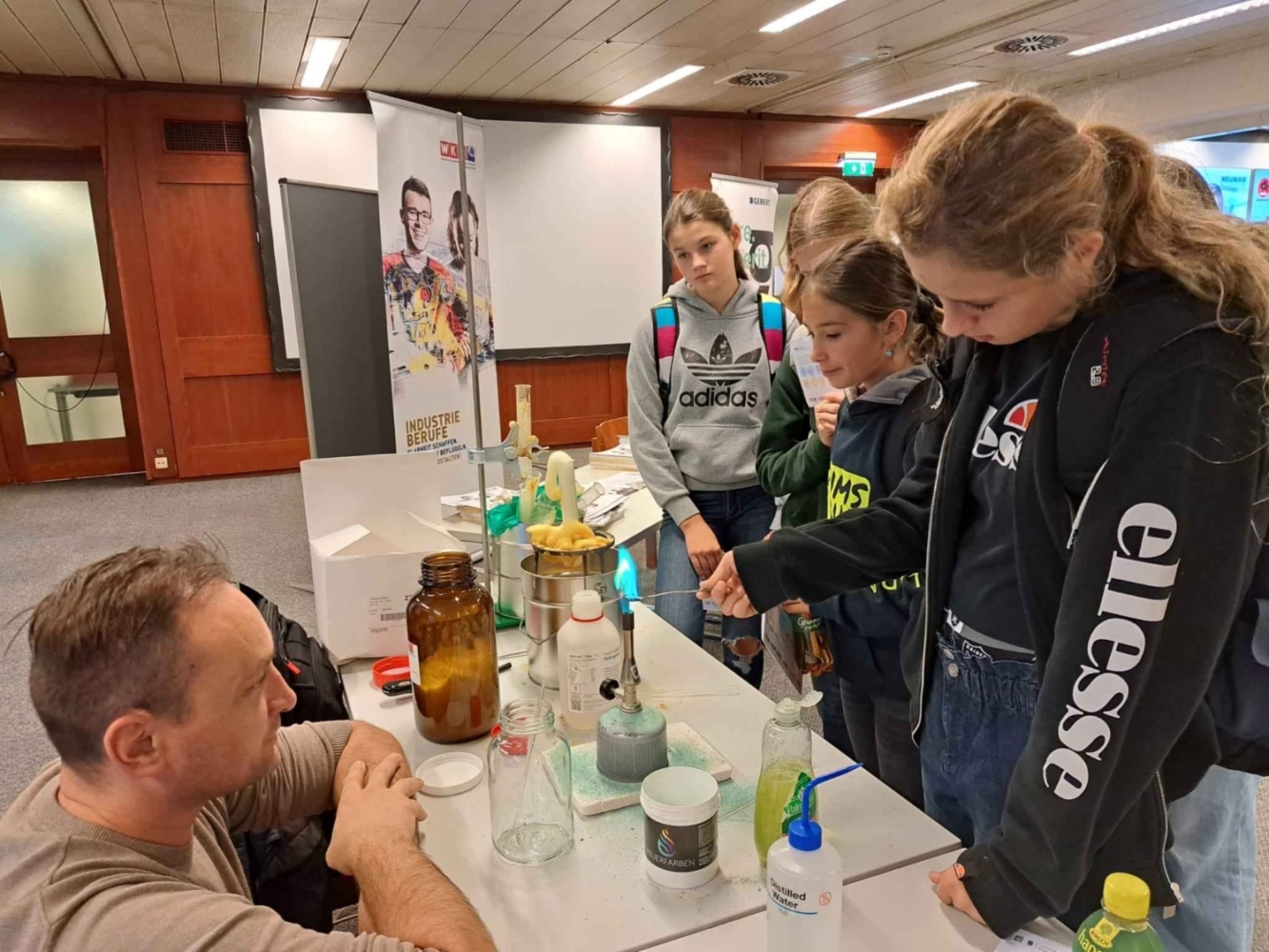 ….. erlebten die SchülerInnen der Klassen 4a und 3y bei einem faszinierenden Ausflug zum Experimentaltag im Wifi St. Pölten. Die Veranstaltung bot eine beeindruckende Plattform, auf der Schüler verschiedener Schulen und Vertreter von Unternehmen ihre kreativen Experimente präsentierten. Unsere Schüler hatten die Gelegenheit, hautnah an spannenden Versuchen teilzunehmen und ihr Interesse an Naturwissenschaften zu vertiefen. Die Vielfalt der gezeigten Experimente begeisterte die Schüler, und der Tag war durchgehend von aufregenden Entdeckungen und lehrreichen Momenten geprägt. Diese Veranstaltung stellte nicht nur eine Bereicherung für das schulische Curriculum dar, sondern förderte auch die Neugier und Begeisterung der Schüler für wissenschaftliche Themen. Der Experimentaltag im Wifi St. Pölten war somit ein rundum gelungener Ausflug, der die Schülerinnen und Schüler nachhaltig beeindruckte.