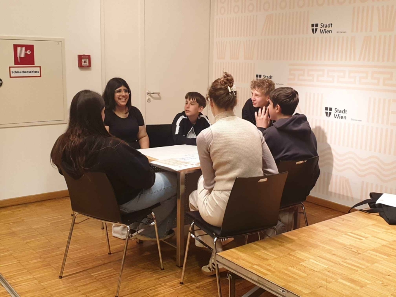 In den Veranstaltungsräumen der Hauptbücherei Wien am Urban-Loritz-Platz nahm die 3a an einem Workshop zum Thema „Demokratie und Partizipation“ teil. Zwei Referentinnen des „Demokratiezentrum Wien“ vertieften zuerst in einem regen Austausch das Wissen der Schülerinnen und Schüler zu den wesentlichen Bausteinen der Demokratie und zu Kinderrechten. Der zweite Teil des Workshops war methodisch sehr interaktiv gestaltet und „ist wie im Flug vergangen“, so ein Schüler der 3a. Die Jugendlichen setzten sich dabei mit zahlreichen Möglichkeiten von Partizipation auseinander und diskutierten in Kleingruppen darüber, wie eine Gesellschaft ausschauen kann, in der sich alle Menschen wohlfühlen.